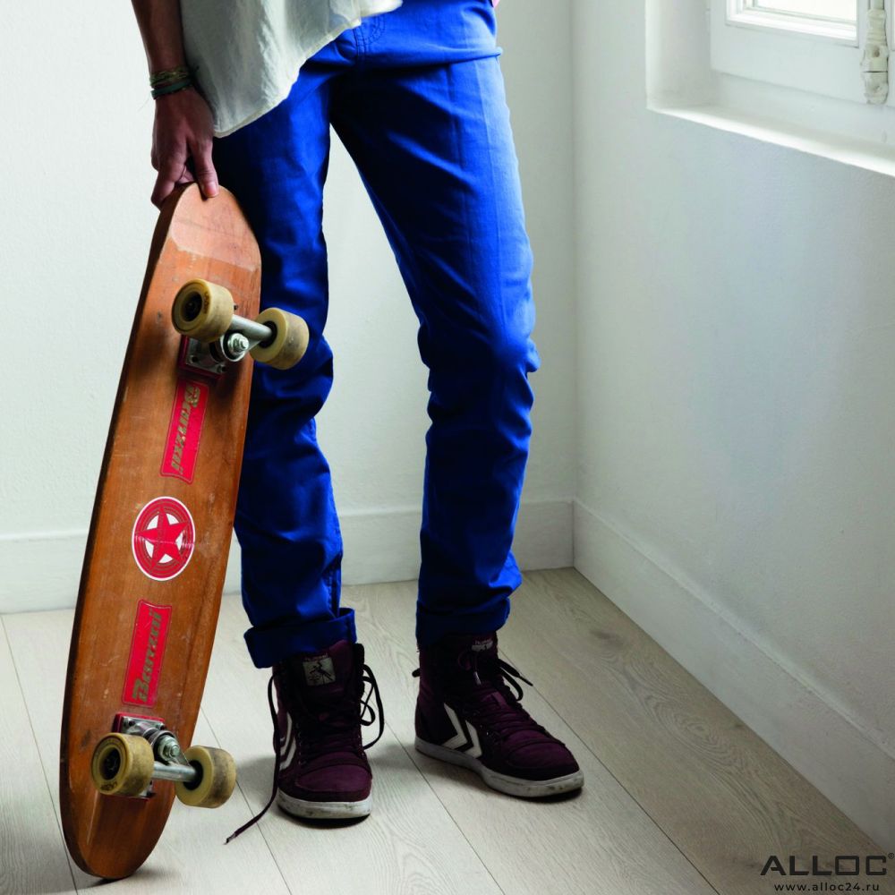 Ламинат Alloc Дуб Светлый — это высококачественное и стильное напольное покрытие из однополосной дубовой доски выбеленного оттенка. Фаски вдоль доски добавляют ламинату глубины и реализма, имитируя дощатый пол.